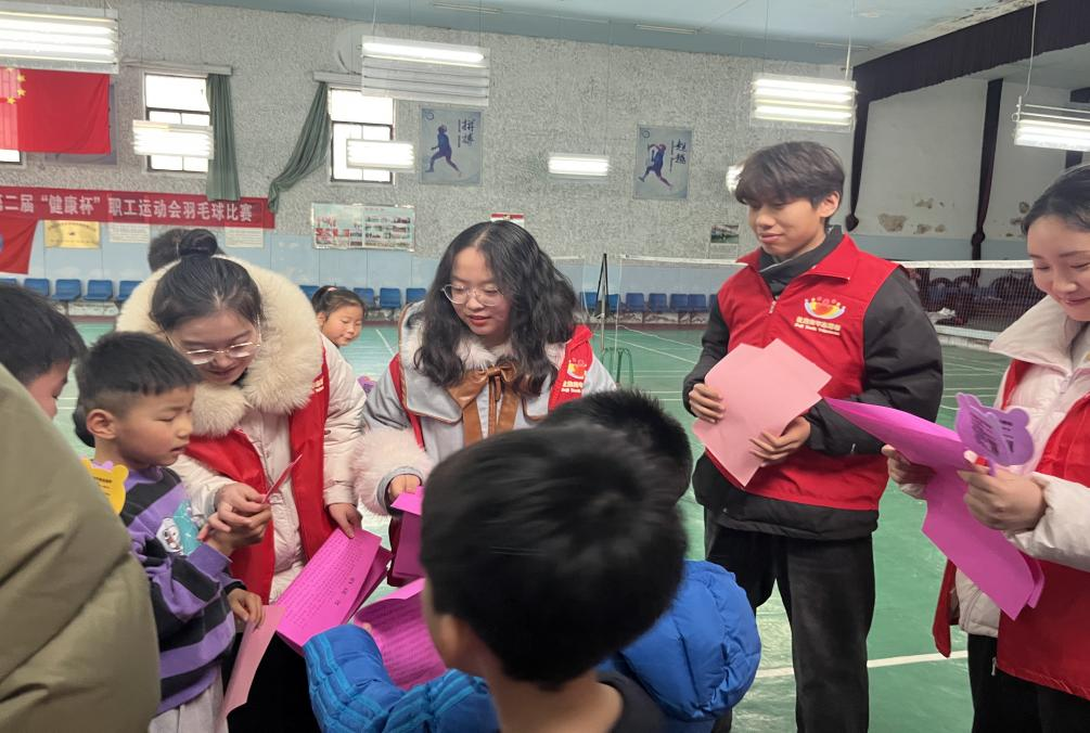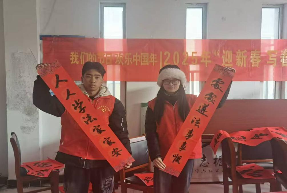 在安徽省砀山县,来自2023级计算机科学与技术1班的王冉同学回到家乡,积极参与当地团委组织的“写福字、送春联”活动。他与志愿者们一起挥毫泼墨,书写了一幅幅寓意吉祥的春联和“福”字,并将这些满载祝福的作品送到社区居民手中。“看到乡亲们收到春联时开心的笑容,我觉得一切付出都值得。”王冉说道。