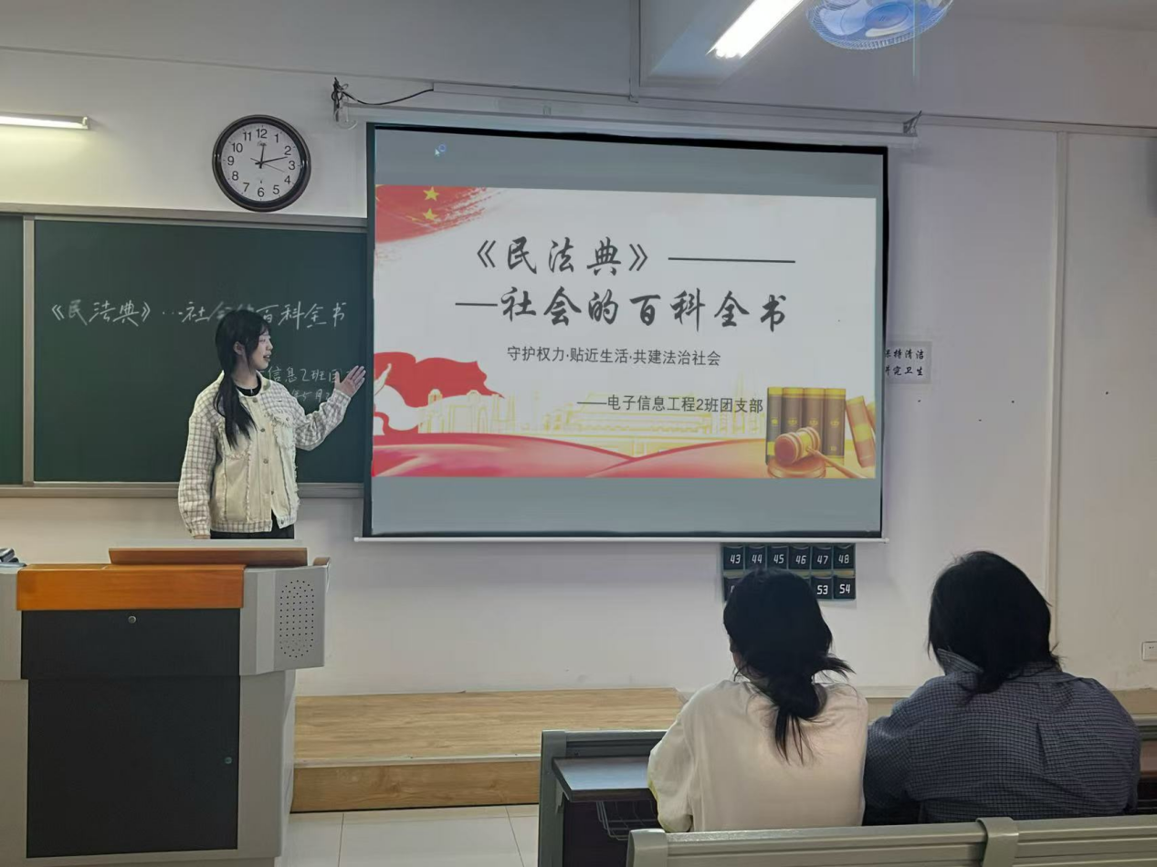 学院以班级为单位开展了以“学民法典,做守法青年”为主题的团课活动。由各班级团支书带领班级学生共同学习了团中央关于学习宣传民法典的相关文件精神,强调了民法典对于我国法治建设的重大意义以及团员青年在其中应承担的责任。团员青年们积极分享了自己在日常生活、学习中遇到的法律问题,并结合民法典进行了讨论和交流,进一步加深了对民法典的理解和记忆,增强了大家的法治意识和法律素养。