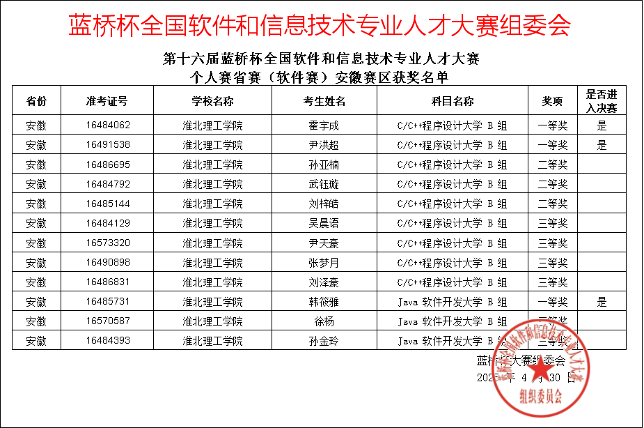 必赢官网必赢线路检测3003no1学子凭借扎实专业功底在第十六届“蓝桥杯”全国软件和信息技术专业人才大赛全国总决赛中,获国家一等奖1项、国家二等奖1项、国家三等奖2项;在第十六届“蓝桥杯”全国软件和信息技术专业人才大赛安徽赛区,获省级一等奖4项、省级二等奖14项、省级三等奖13项。