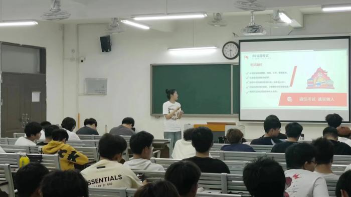 在班会上,各班级辅导员详细阐述了“诚信考试”的含义,通过真实案例讲述考试作弊的危害,并向同学们介绍国家、学校对于考试违纪行为的惩罚制度等相关内容。各种因为考试作弊而被处分的例子让同学们清楚的认识到了考试作弊不仅践踏了诚信理念,加剧了信用危机,还助长了部分学生不劳而获、投机取巧的心理,会影响同学们学习的积极性,干扰良好学风的形成。最后辅导员倡导全体学生签订诚信承诺书,分别从学习义务、守纪义务、缴费义务、文明义务、诚信就业等方面作出承诺。