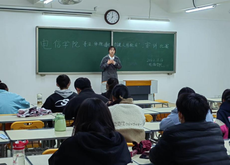 为了提高广大青少年学生的思想道德和法律素养,帮助学生树立正确价值观,必赢官网辅导员组织各个班级开展了以“守法、修德、遵纪,创建文明校园”为主题的班会活动。在班会中,辅导员带领学生学习了校园网上的法律条文、德育、校纪、文明专题知识等内容,并组织观看相关视频,更加直观的向同学展示遵纪守法的重要性,并展示相关案例,同时分析了违法的内在和外在原因,引以为戒,不“入坑”。