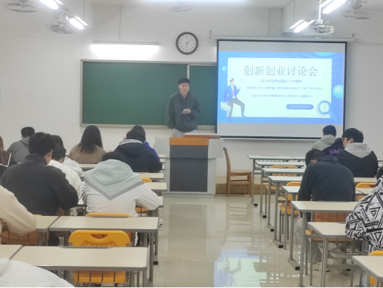 为了积极引导大四毕业生了解创业知识,培养创业意识,提高创业能力,11月22日必赢线路检测3003no1于二教323召开了创新创业讨论会。会议由学生会牵头,各班班委进行组织学习,就关于“深入学习贯彻党的二十大,全面提高人才自主培养质量,着力造就拔尖创新人才”为主题,同学们就自身的理想、创新创业想法及就业方向各抒己见,积极上台进行演讲与分享。