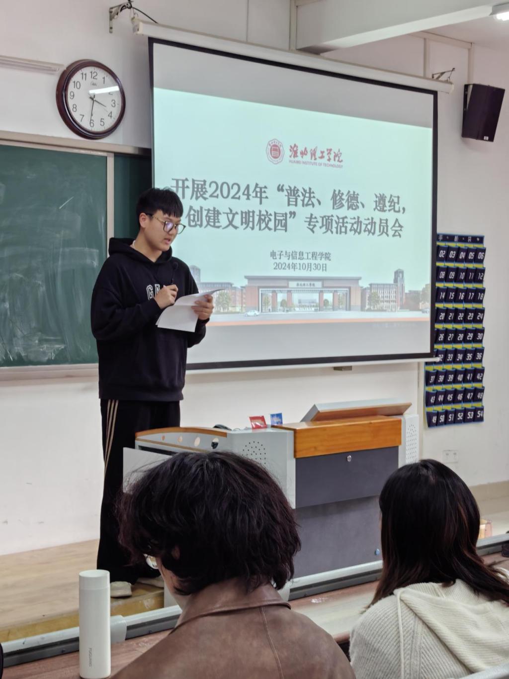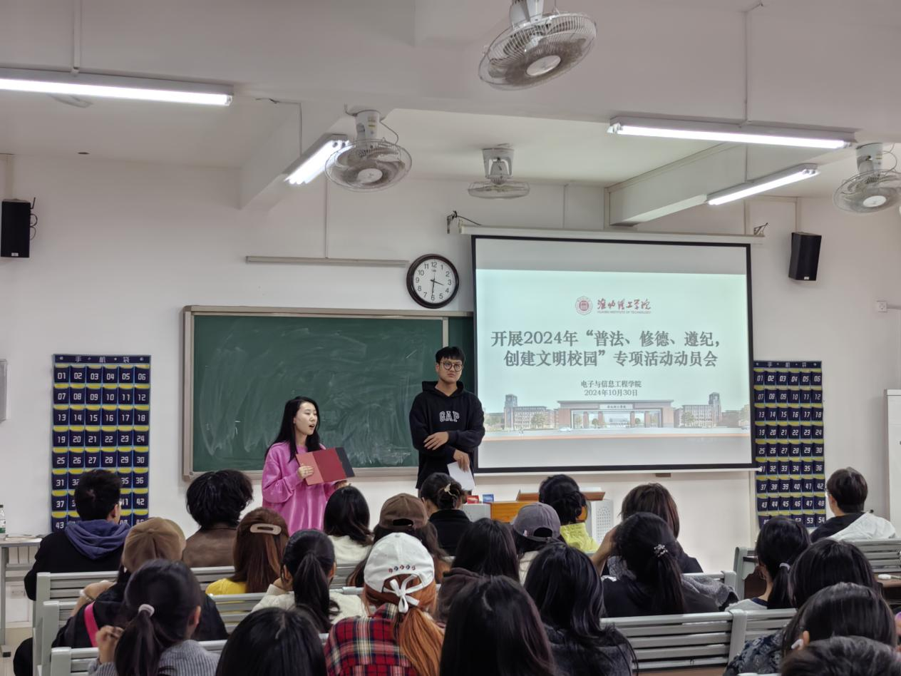 为迎接学校2024年“普法、修德、遵纪,创建文明校园”专项活动,必赢线路检测3003no1于2024年10月30日召开“普法、修德、遵纪、创文明校园”动员大会,学院老师和2024级班委参会。