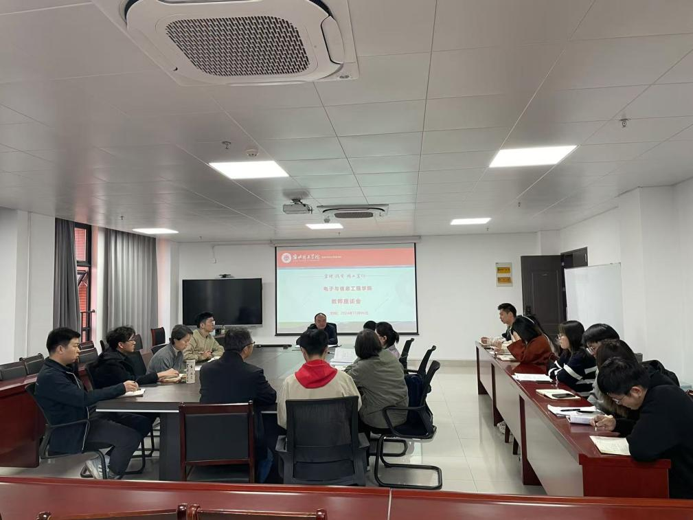 学院高度重视教师的培养工作,致力于为教师搭建成长平台、创造发展机会。院长鼓励教师积极谋求校企合作,加强产学研成果转化。希望教师多研读国家有关领域的科技规划,尽早对个人和团队科研工作进行统筹和规划。学院将进一步优化教师队伍结构;持续为学院师生搭建更具开放性、更加多元化、更高水平的交流平台,以不断加强师生互动;教学应以“严”字当头;各教师要始终葆有高度的责任感和使命感,深耕“金课”、剔除“水课”,积极参与教材编写、教改项目、大学生创新大赛、互联网+大赛等教学工作,做扎扎实实的教学研究,营造更加良好的教学氛围;要教育和引导学生常怀家国情怀,常怀感恩之心,不负时代,不负青春。