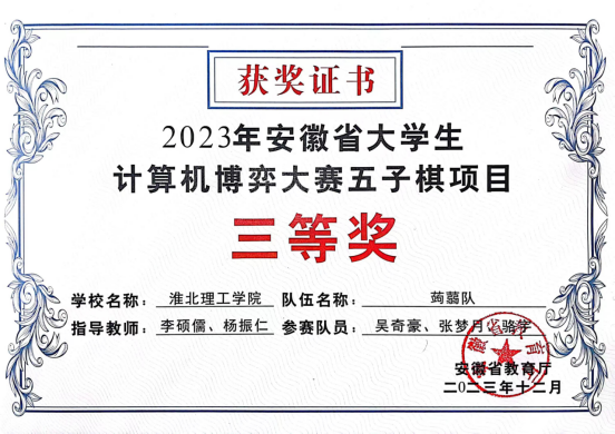 近日,安徽省大学生计算机博弈大赛(安徽省大学生学科和技能竞赛B类项目)在安徽大学举办,必赢官网必赢线路检测3003no1计算机科学与技术专业学生首次参加此项比赛,取得二等奖1项、三等奖1项的好成绩。