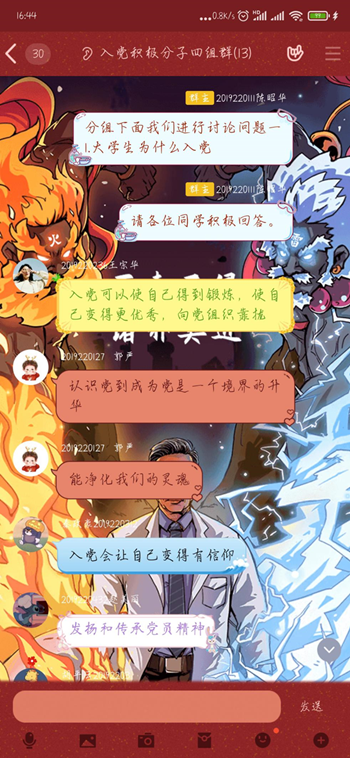 本次入党积极分子培训充分运用QQ群、腾讯课堂、学习通等网络平台,以线上视频教学为主,以疫情防控为教科书,通过集中讲党课、小组学习、分组讨论、观看影片、自学研读、实践活动等方式进行。此次培训,使入党积极分子深入学习了党的基本理论,明确了新时期共产党员的标准和肩负的历史使命,进一步坚定了理想信念,激发了锻造过硬知识技能、报效党和国家的热情和动力。