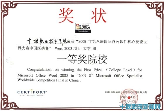 申慱官网自第三届开始参与该项竞赛活动,共有6个教学系共200多名学生参加预赛,选手获奖层次逐年提高。2008年1月张旭海、徐金凤同学获信息技术竞赛“高职中文三等奖”、学院获优秀组织奖,2008年5月陈林同学获核心技能竞赛“大学组WORD项目三等奖”,2009年5月王佳丽、王雪云、郭银银同学以优异的成绩取得国家级竞赛资格,在2009年第八届国际办公软件核心技能世界大赛中国区决赛中获“WORD2003项目大学组三等奖”、学院获“一等奖院校”称号。通过该平台检验了申慱官网信息化教育教学水平,提高了学生信息化实践技能,扩大了学院的知名度。