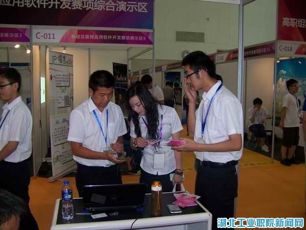 移动互联网应用软件开发项目是2013年新增的国赛项目,本次国赛共有来自全国22个省市的52支代表队参赛,竞争异常激烈。赛前信息与智能工程系精心组织,通过多轮遴选和竞争确定两个团队6名选手,又通过作品制作和模拟答辩等综合考察,最后确定以2011级嵌入式技术与应用专业(3G/4G手机应用开发方向)的祝海林、李韩聪、谭冉冉(共建专业)3名同学组成团队,由张明老师为领队,王家旭、陈传森(合作专业)老师任教练参加本次国赛。