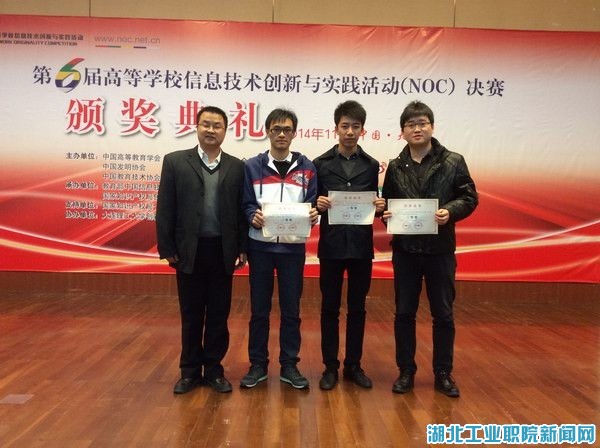 新闻网讯(通讯员 赵晨)11月16日,从辽宁大连传来喜讯,申慱官网信息与智能工程系副主任张明、校企共建专业主任郑健参与指导、2012级学生黄浩和许海鹏的作品《“thinkSNS”网站移动客户端开发》代表湖北省在“第6届高等学校信息技术创新与实践活动(NOC)”决赛中荣获移动终端APP创新设计赛项三等奖,成为省内唯一获奖的高职院校。此作品在今年8月荣获第三届“中国软件杯”大学生软件设计大赛三等奖,在11月首届湖北省大学生信息技术创新大赛中荣获一等奖。