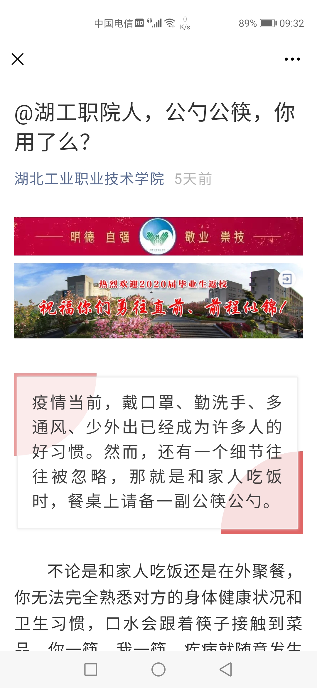 学校公众号@湖工职院人,公勺公筷,你用了么?