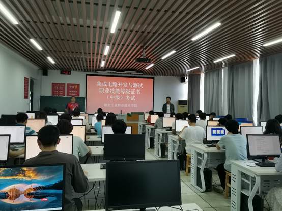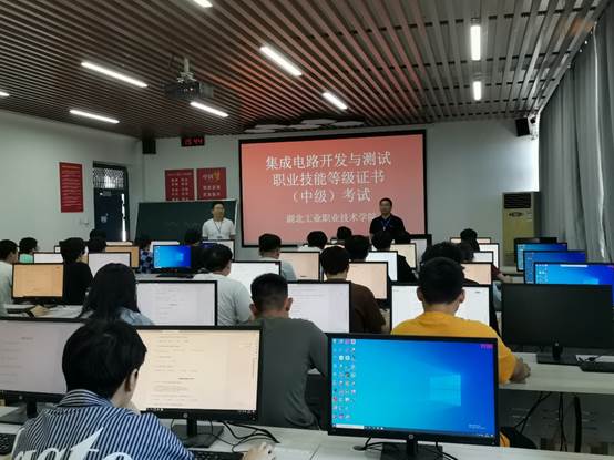 sunbet申慱官网对1+X试点工作高度重视,专门成立1+X认证推进小组,选派多人次参与杭州朗迅科技股份有限公司(以下简称杭州朗迅)举办的师资培训及考务培训,坚持每月2次书面汇报1+X证书推进情况。今年4月初顺利完成了2023年度集成电路开发与测试职业技能等级证书考核站点申报及湖北职业教育培训申报工作,随后完成了学生报名信息录入、考试计划协商、考试方案制定等诸多前期准备。