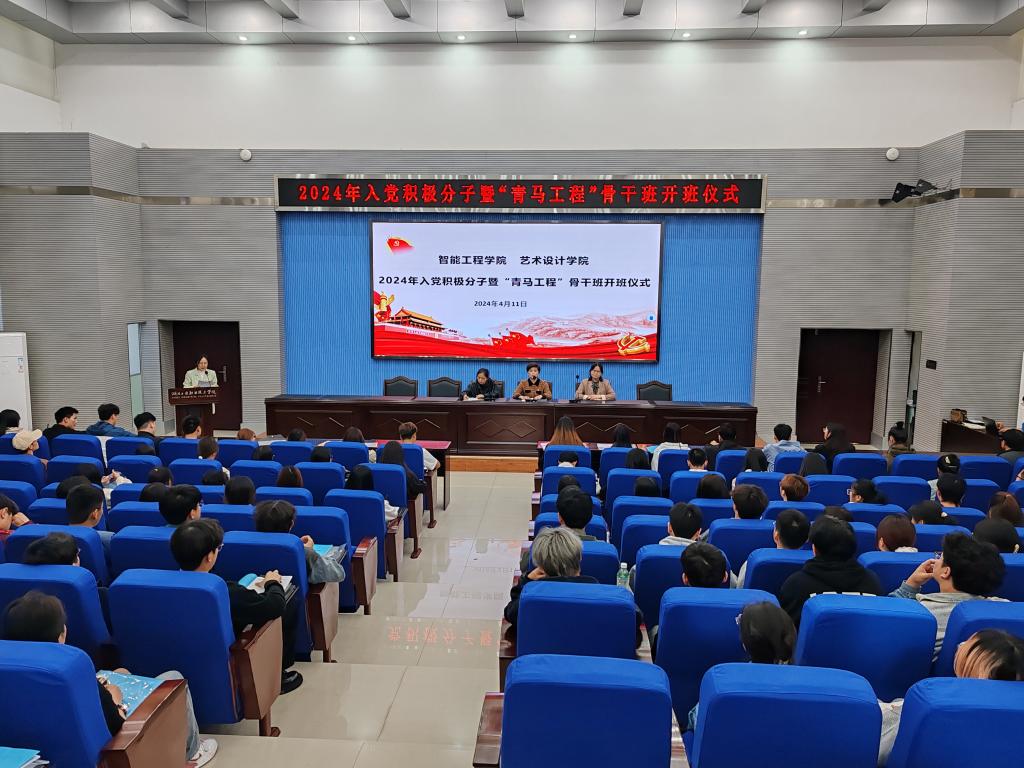 新闻网讯(文/徐丽 图/王官涛)4月11日晚,sunbet申慱官网联合艺术设计学院在学术报告厅开展入党积极分子暨“青马工程”骨干班开班仪式。党校常务副校长、党委组织部(统战部)副部长毕艳琼,sunbet申慱官网党总支书记王蓉、艺术设计学院党总支书记徐薇、sunbet申慱官网专职组织员胡现敏、sunbet申慱官网党总支副书记徐耀勇、艺术设计学院学生党支部书记徐阳及辅导员出席本次会议。101名入党积极分子和68名青马班学员加了此次培训。