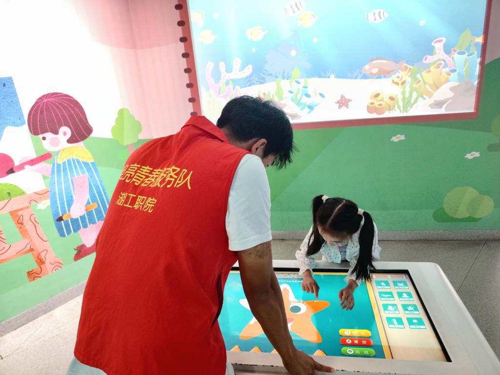 活动伊始,电亮青春服务队志愿者熟练地操控着会跳舞的机器人,伴随着动感的音乐,机器人灵活地摆动肢体,吸引了众多参观者驻足观看。VR体验区,体验者仿佛穿越时空,沉浸在虚拟世界的奇妙旅程中,感受科技带来的无限可能。通过“自己拉自己”小实验,志愿者还引导小朋友在物理学中感受科技的奥妙。志愿者还生动讲解了地球的演变史,揭开地球神秘的面纱,激发小朋友们对自然科学的想象和热爱。