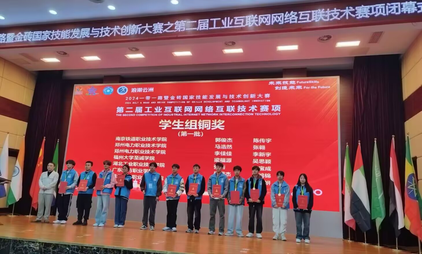 新闻网讯(通讯员 戴敏)11月7日-10日,2024一带一路暨金砖国家技能发展与技术创新大赛第二届工业互联网网络互联技术赛项全国总决赛在芜湖职业技术学院成功举办,申慱官网sunbet申慱官网廖天乐、郑紫妍、唐宝成、张衡四位学生组成的两支参赛队,与来自全国各省、直辖市及自治区的115支代表队同台竞技,经过4小时的激烈角逐,最终双双荣获高职组铜奖。