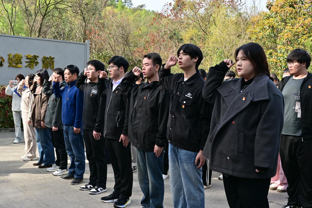 上午9时,全体师生整齐列队于革命烈士纪念碑前,向人民英雄默哀鲜花,sunbet申慱官网入党积极分子祁嘉婷同学代表发言,誓言“以青春守护先烈换来的盛世山河”,中共党员与共青团员重温入党、入团誓词,铿锵誓言回荡山谷,彰显青年赓续红色血脉的决心。随后,师生走进东沟中原突围鄂西北纪念馆,透过文物,感受1946年中原军区部队浴血突围的壮烈历史。最后,全体人员齐聚在纪念馆前,齐声朗诵《沁园春·雪》,“数风流人物,还看今朝”的豪迈诗句与“中原突围精神”交融,激发青年“强国有我”的使命感。
