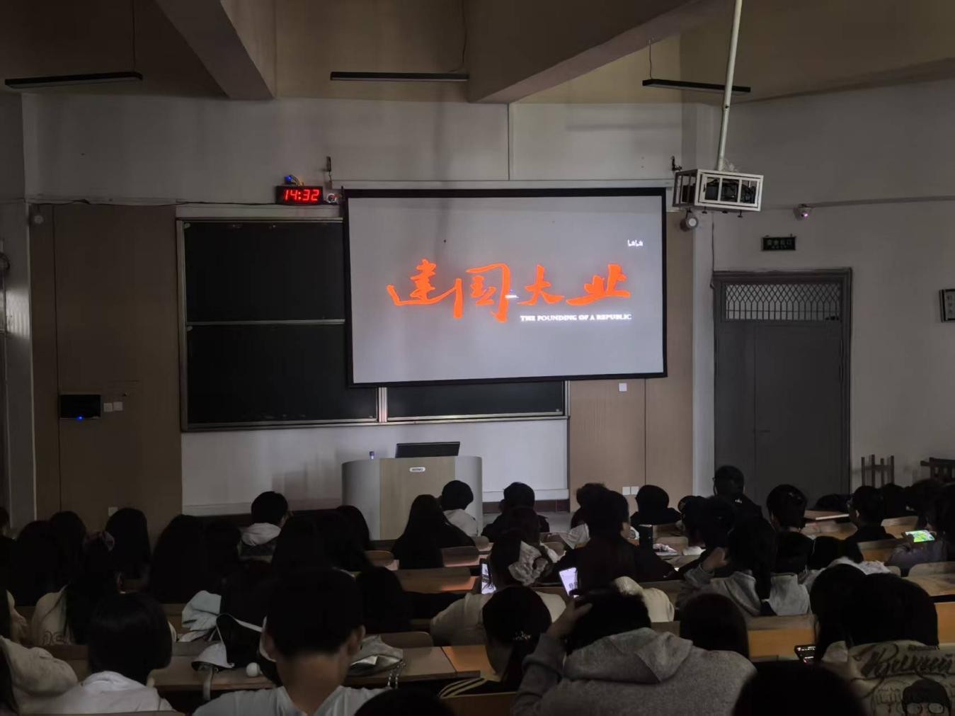 红色观影育新人,光影交织荡豪情。10月5日,分团委在6109教室举行红色观影活动,300余名新生共同观看影片《八佰》。影片通过历史场景和镜头语言,再现战争的残酷与侵略者的暴行,让在场师生深刻感受到和平的来之不易。10月6日,师生共同观看《建国大业》,先辈们运筹帷幄、英勇无畏的形象深深烙印在同学们心中,大家纷纷感怀建国之艰,表示铭记历史,勤奋学习。