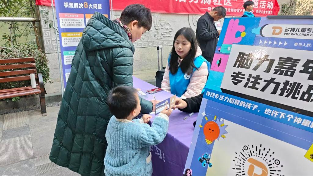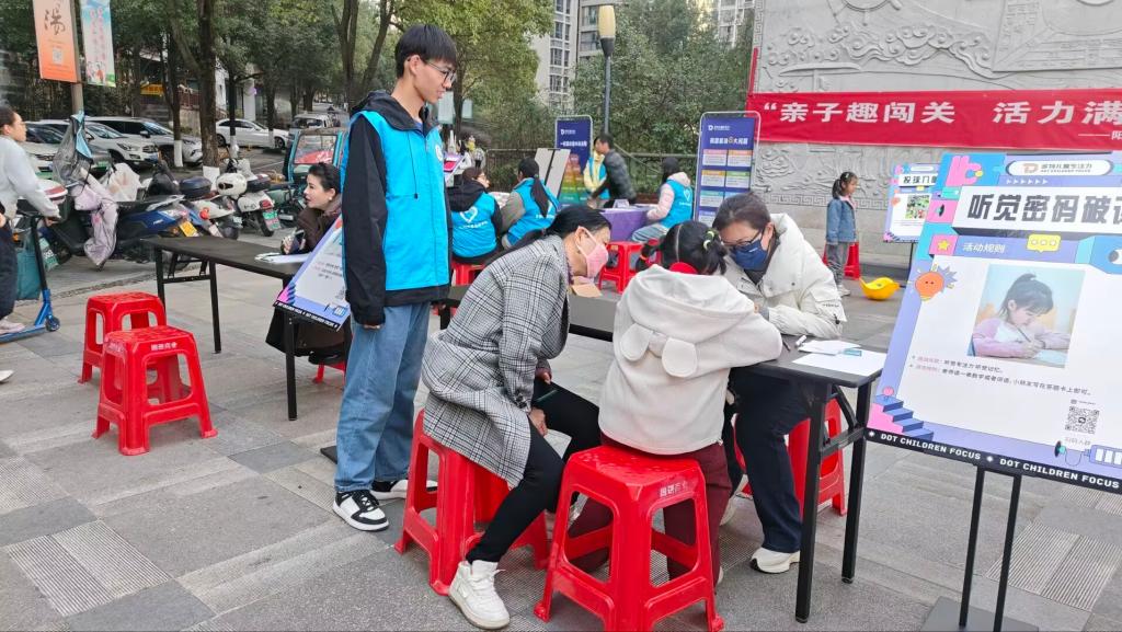 活动前,志愿者与社区服务中心精准对接,细化流程、明确安全须知并制定应急方案,现场道具与休息设施摆放整齐,营造出安全舒适的环境。活动伊始,志愿者化身“科普引导员”,用卡通动画片段通俗讲解“专注力对儿童认知发展的重要性”,并结合闯关任务给出“分段完成目标、减少环境干扰”等实用小技巧,让家长与孩子在趣味中收获知识。